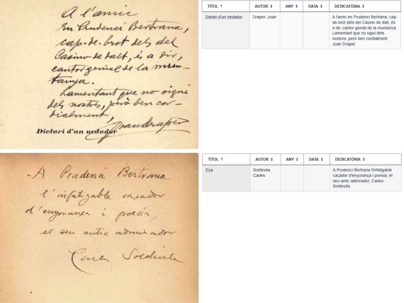 “Barcelona”, s’inspiren en sengles dedicatòries a Prudenci Bertrana al llibres