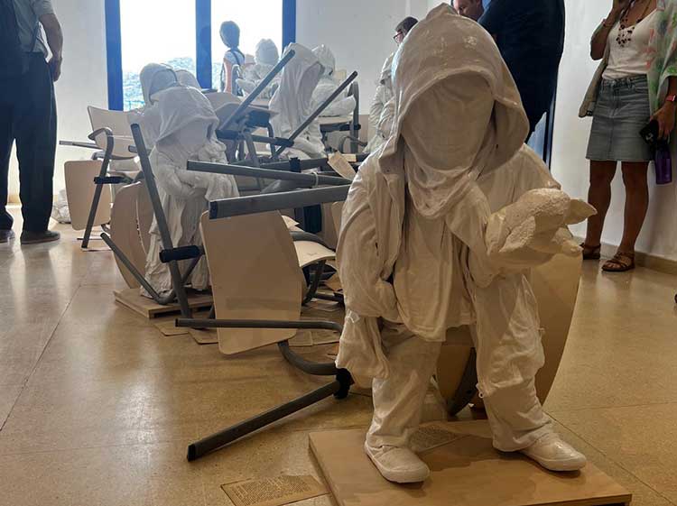 Així mateix, hi hagueren dues exposicions: “Mostra bibliogràfica de llibres de periodistes catalans a l’exili” comentada per Josep M. Figueres i “Veus exiliades”, una exposició artística, interpretada per la seva autora, Jimena Lucas, la qual ens oferí una performance teatral i conceptual que reflectia el silenci forçat de la infància a l'exili i l'exili dels periodistes.