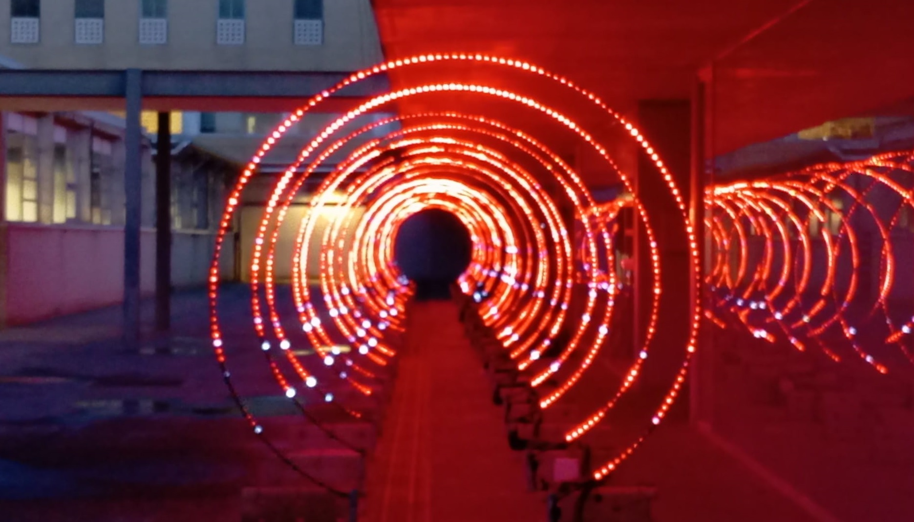 Aquesta instal·lació us convida a creuar un llindar entre dos punts, on l'espai es distorsiona i el temps sembla suspendre’s.