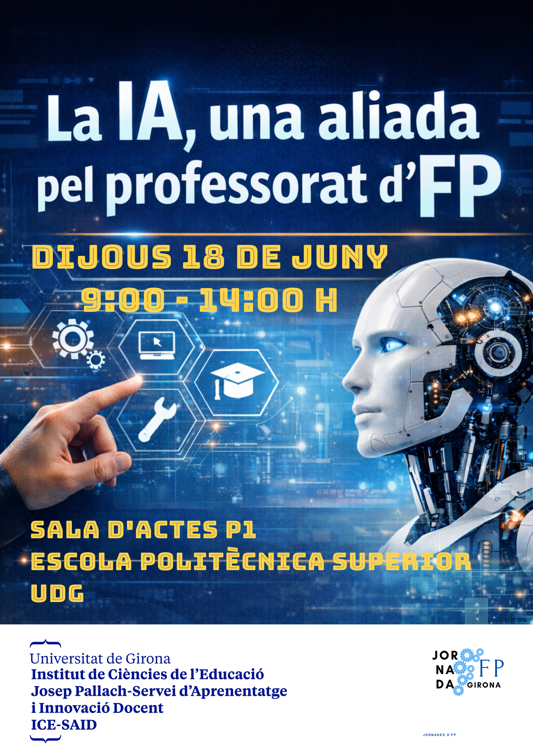 El dimarts 17 de juny de 2025 va tenir lloc la IX Jornada d'FP a la Sala d’Actes de l’Escola Politècnica Superior de la Universitat de Girona.