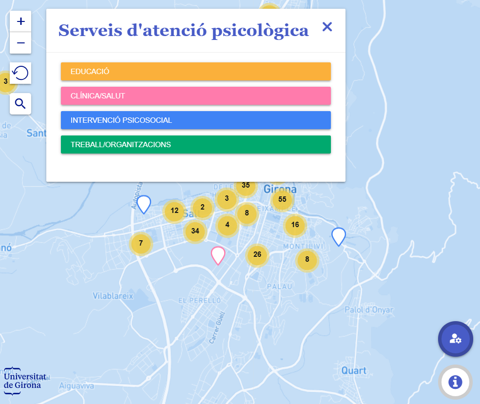 L'elaboració d'aquest mapa és fruit d’un conveni de col·laboració entre el Grup d’Innovació Docent – Model Acadèmic de Psicologia i la Delegació Territorial de Girona del Col·legi Oficial de Psicologia de Catalunya.