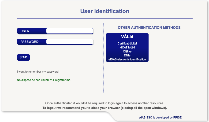 - A mobile phone to receive SMS messages, or one of the authentication systems accepted by VÀLid: recognised digital certificate, mobile IdCAT, Cl@ve, or eIDAS.