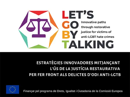 El projecte LetsGoByTalking té com a objectiu contribuir a la reparació dels delictes d'odi anti-LGTB mitjançant la promoció de la justícia restaurativa a la Unió Europea. El projecte, finançat pel Programa Justícia (2014-2020) de la Unió Europea, és fruit de la col·laboració entre institucions de sis països (Bèlgica, Bulgària, Espanya, Itàlia, Països Baixos i Polònia).