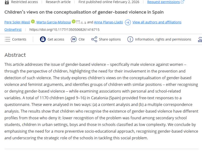 Llegir més S'acaba de publicar l'article: "'The aspirations of children at risk of dropping out of school" 22 de gener 2026